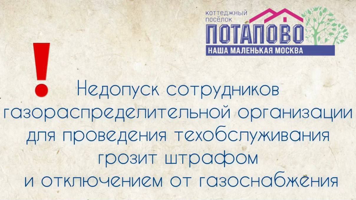Просим вас не создавать препятствий сотрудникам газовой службы для проведения плановых проверок и технического обслуживания газового оборудования, поскольку это противоречит установленным требованиям и может создавать угрозу жизни и здоровью жителей.