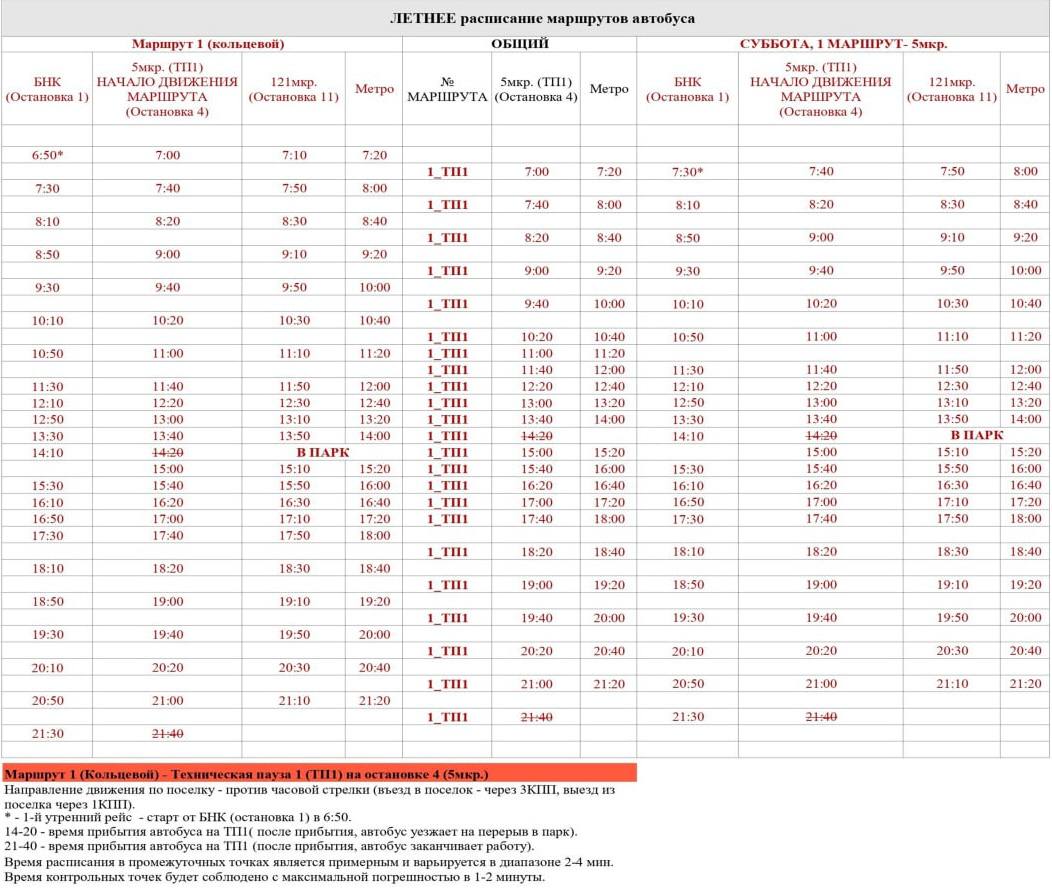 Расписание маршрута №1 остается неизменным