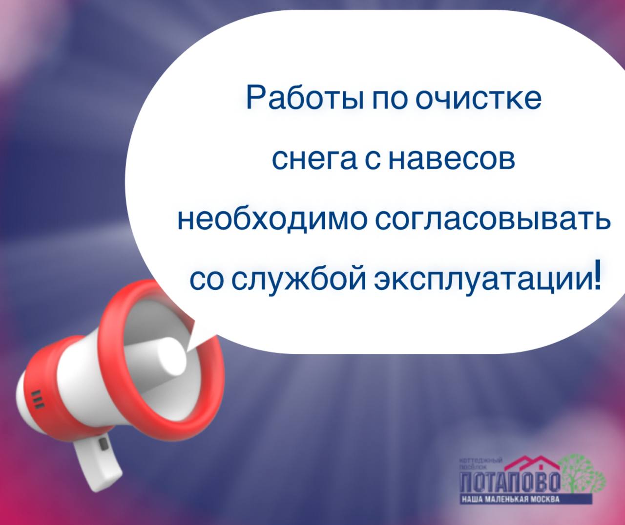 Соседи! ЖСК «Альфа» убедительно просит вас согласовывать работы по очистке навесов от снега со службой эксплуатации: +79777945351.